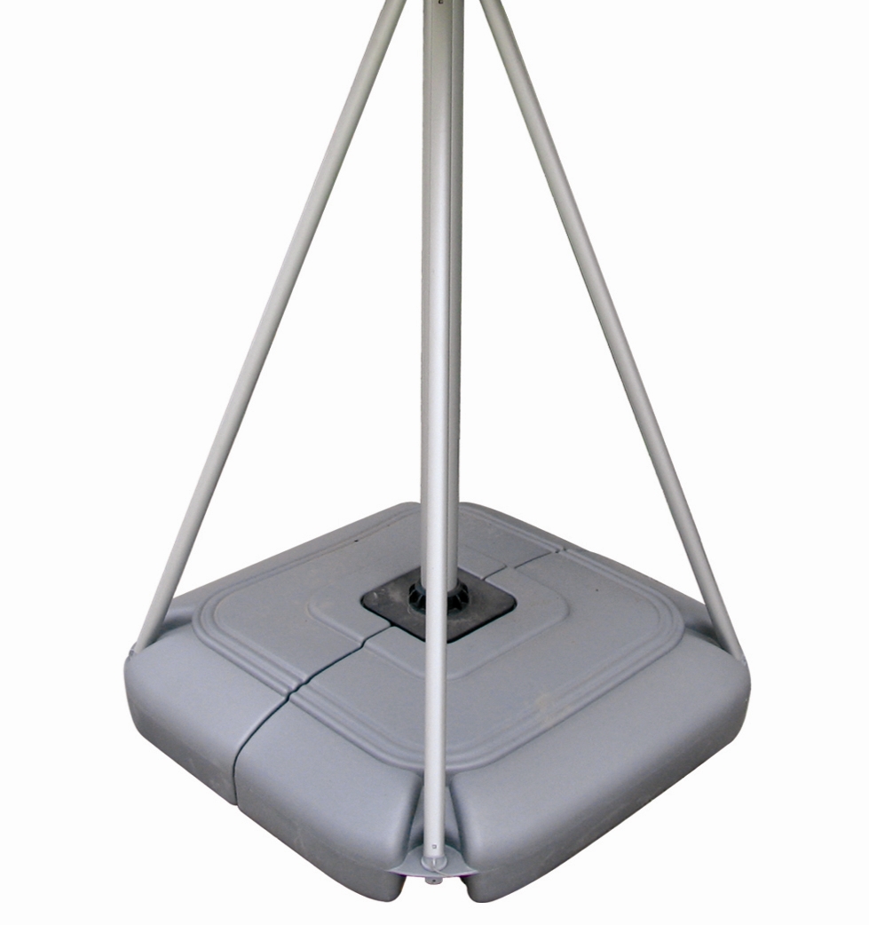 Der Standfuß der Fahne ist ein hohler Plastikfuß. Dieser kann mit Sand oder Wasser gefüllt werden und sorgt dann für eine gute Stabilität und Standfestigkeit. Der Fahnenmast gewährleistet eine Standfestigkeit bis zu einer Windstärke von 4 (ca 18-24 km/h). Im leeren Zustand ist er allerdings sehr leicht und somit gut zu transportieren, zudem kann er in vier Teile zerlegt werden, was den Transport noch leichter macht.