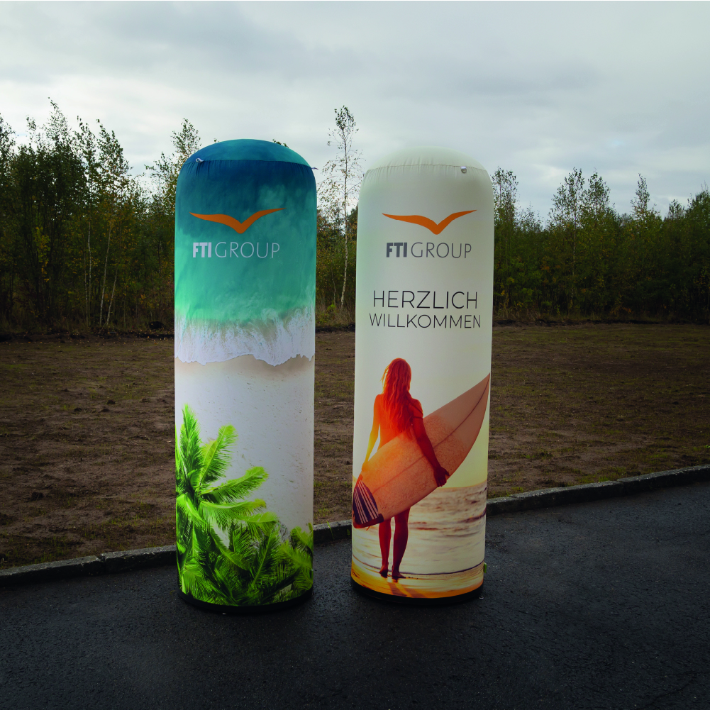 Aufblasbare Werbesäule pneumatisch (D 67 cm x H 300 cm) bedruckt in Kaufbeuren, Kempten, Marktoberdorf, Füssen und Mindelheim bei PAGEfactory