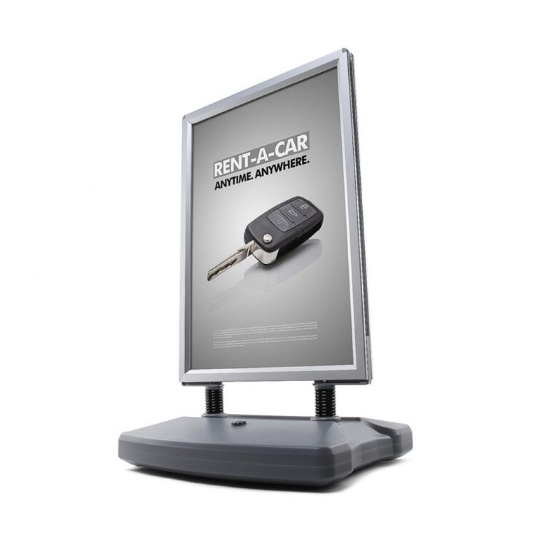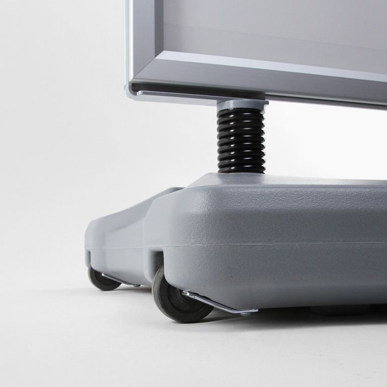 Speziell für Ihre Werbung in windigen Bereichen ist der Kundenstopper WINDTALKER® von PAGEfactory in Kaufbeuren, Kempten, Marktoberdorf, Füssen und Mindelheim die optimale Lösung. Sein mit Wasser oder Sand befüllbarer Standfuß bietet in Verbindung mit den Spezialfedern aus Stahl eine hohe Standfestigkeit. Für den einfachen Transport sind im Standfuß Rollen integriert. So können Sie den Kundenstopper trotz des Standgewichtes einfach bewegen. Der Aluminium-Schnellwechselrahmen kann doppelseitig mit Plakaten bestückt werden und garantiert Ihnen auch bei hohen Windstärken eine auffällige Werbemöglichkeit.