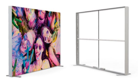 Der MULTIframe SIDELIGHT von PAGEfactory in Kaufbeuren, Kempten, Marktoberdorf, Füssen und Mindelheim ist ein vollflächig hinterleuchteter LED Rahmen mit einer Bautiefe von nur 12-16 cm (bis 200 cm Höhe: 12cm, ab 250cm Höhe: 16cm Bautiefe). Das einseitig und doppelseitig verwendbare Aluminiumrahmenprofil eignet sich dank der stabilen Füße hervorragend für den Einsatz als Raumteiler. Durch die spezielle Linsenform der LED Module kann man trotz der schmalen Bautiefe keinerlei Lichtpunktbildung auf der Stoffoberfläche entdecken – das Motiv wird einheitlich und schattenfrei dargestellt. Die Stoffgrafiken sind mit Gummilippen versehen, die ihnen einen perfekten Halt im Rahmensystem ohne Falten geben. Darüber hinaus ist mit diesem System ein einfacher und rascher Grafikwechsel möglich. Nicht nur die Leuchtkraft von ca. 5000 lm, sondern auch die homogene Ausleuchtung machen den MULTIframe SIDELIGHT zu einem Leuchtrahmen, der alle ähnlichen Produkte in den Schatten stellt. Alle Systemteile sind auch als Einzelteile erhältlich.