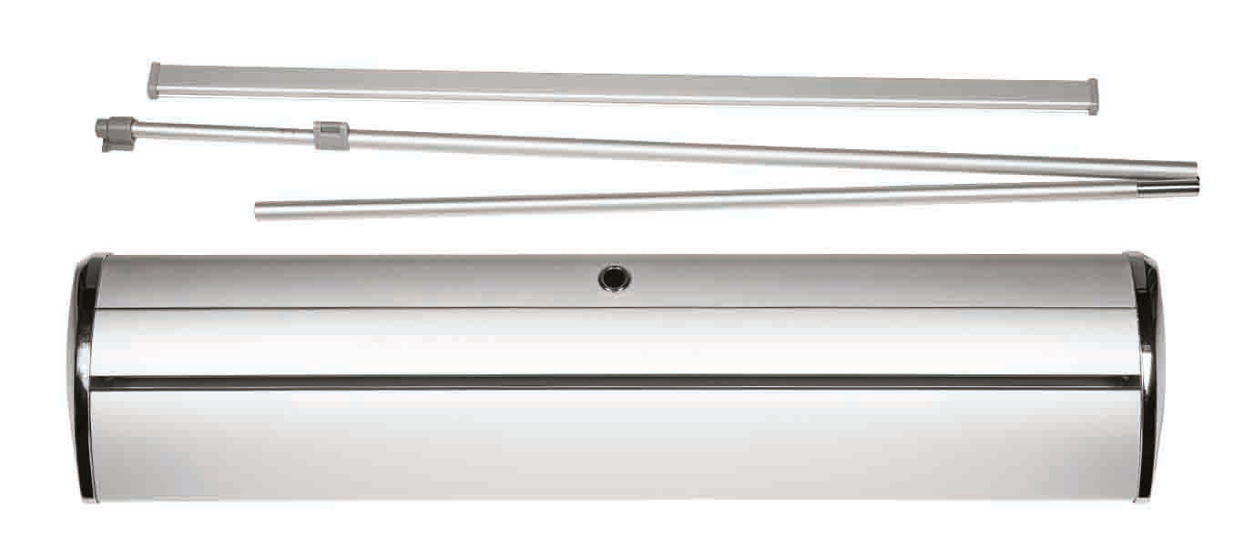 Mit dem Roll-Up Banner von PAGEfactory in Kaufbeuren, Kempten, Marktoberdorf, Füssen und Mindelheim erhalten Sie ein Banner aus der Standard-Reihe. Dieser ist Silber eloxiert und kommt mit einer Klemmschiene sowie verchromte Endkappen daher. Die beiden verchromten Endkappen stechen bei diesem System besonders hervor und verleihen Ihnen einen exclusiven Auftritt. Auch für Messen, Events, Ausstellungen, Werbeaktionen und Ähnliches eignet der Roll-Up Banner sich ideal, denn er kann einfach und bequem in der mitgelieferten Transporttasche transportiert werden.