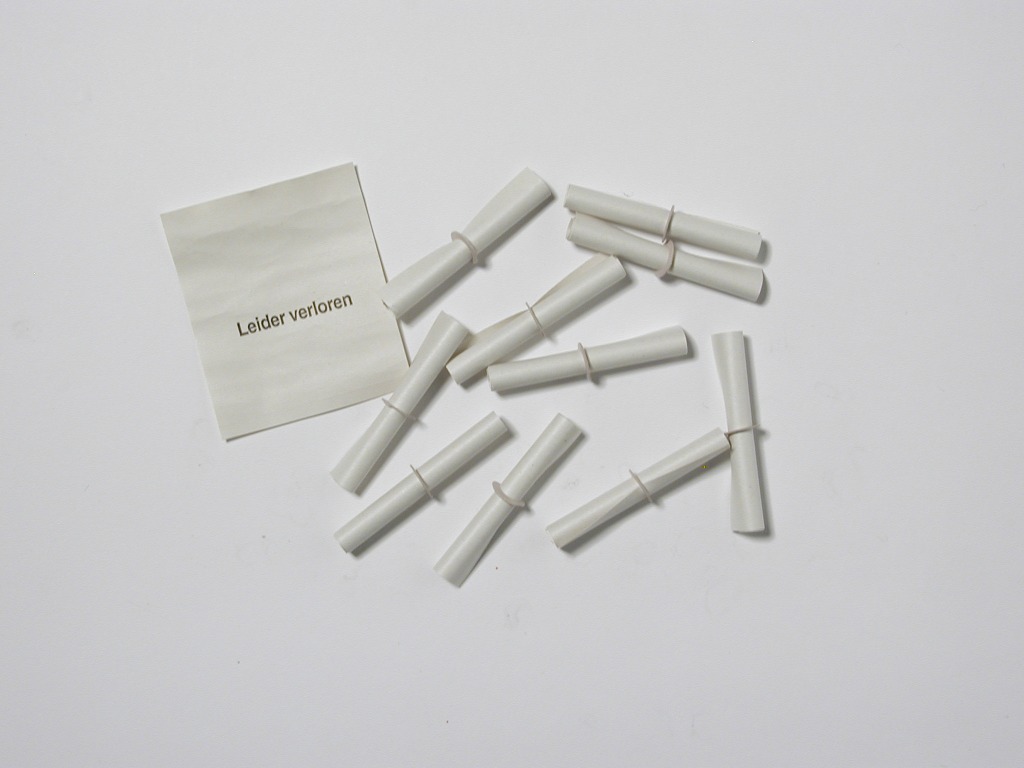 Schon fast 100 Jahre alt, aber noch immer Bestseller - die Röllchenlose von PAGEfactory in Kaufbeuren, Kempten, Marktoberdorf, Füssen und Mindelheim. Das liegt sicher an ihrer Einfachheit, am Rascheln in der Losbox und an der Spannung beim Öffnen der Lose.