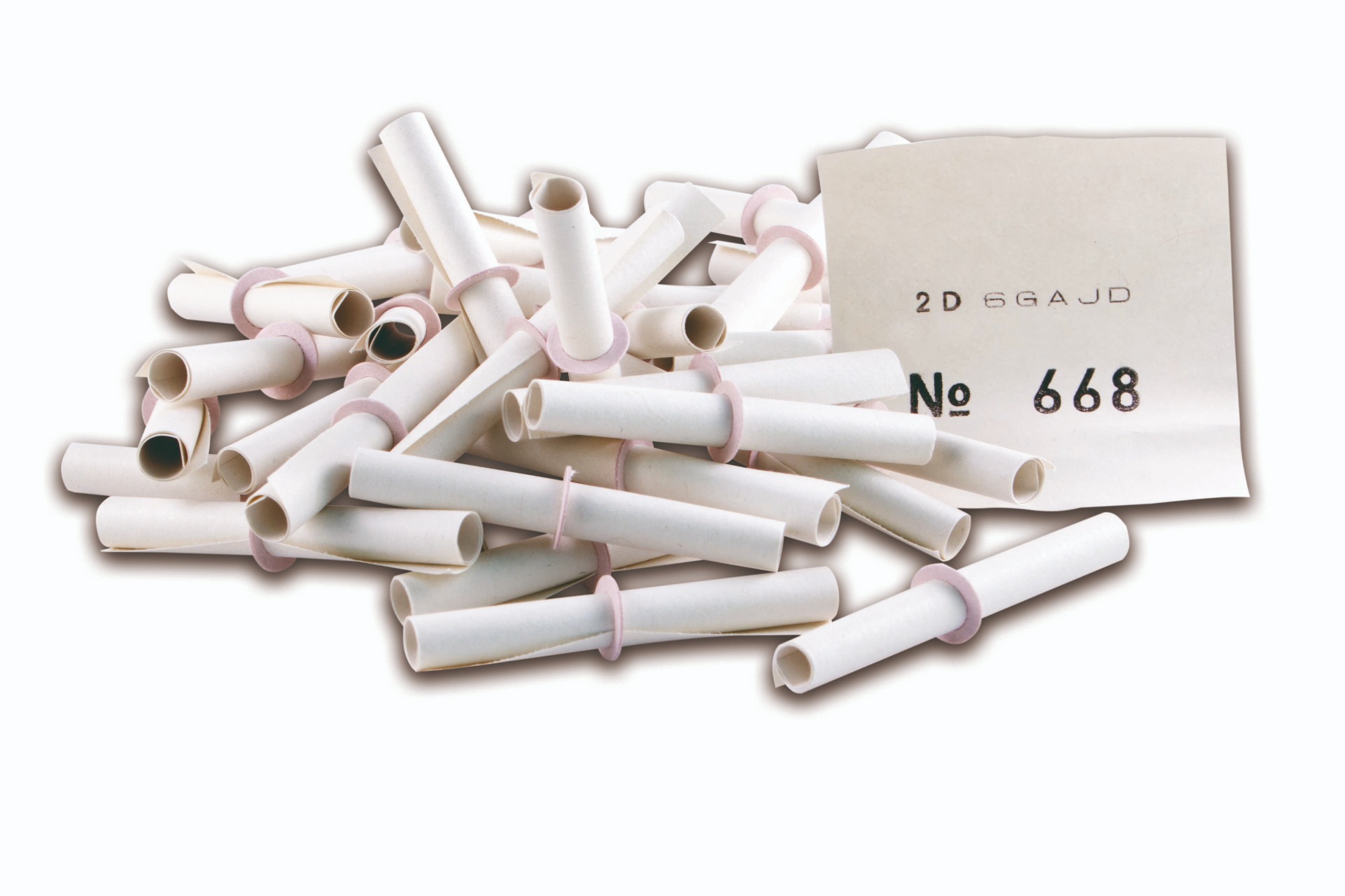 Schon fast 100 Jahre alt, aber noch immer Bestseller - die Röllchenlose von PAGEfactory in Kaufbeuren, Kempten, Marktoberdorf, Füssen und Mindelheim. Das liegt sicher an ihrer Einfachheit, am Rascheln in der Losbox und an der Spannung beim Öffnen der Lose.